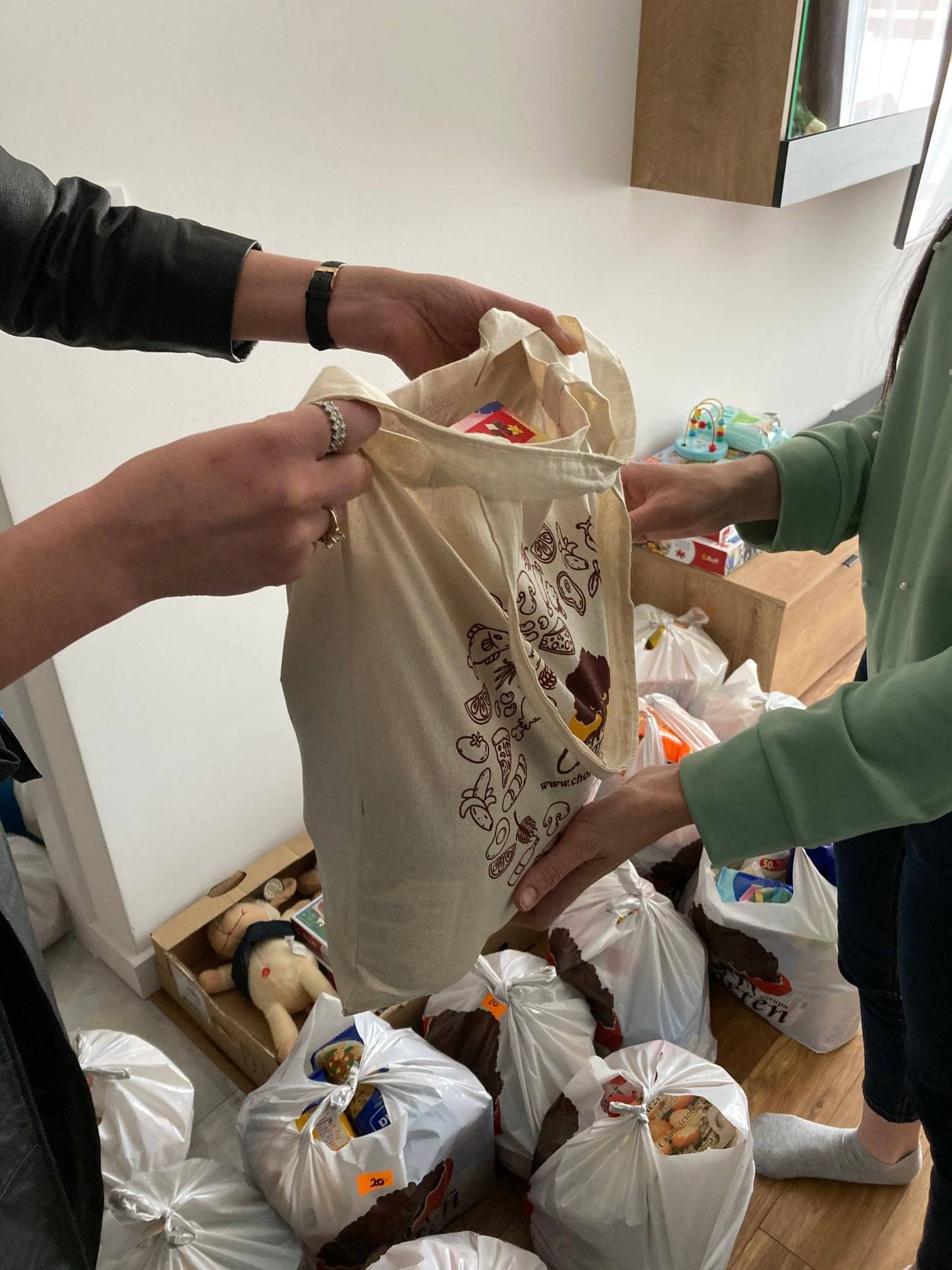 Dzięki stałej współpracy z siecią sklepów spożywczych „Chorten”, Fundacja R.A. zapewnia wszystkim podopiecznym żywność, produkty powszechnie znajdujących się w szafce kuchennej oraz artykuły higieniczne i medyczne. Regularnie dokonywane są zakupy dla uchodźców przebywających w wynajętych mieszkaniach, które mogą być odbierane z magazynu Fundacji. W okresie świątecznym Fundacja składa dodatkowe zamówienia na paczki, które wnoszą radość do domów uchodźców, a dzięki dostawom pracowników sieci „Chorten” udaje się przywrócić uśmiech na twarzach ukraińskich rodzin uchodźców.